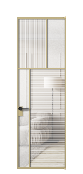 Лаконичный разделительный профиль внутренней раскладки полотна обеспечивает эстетический внешний вид конструкции и идеальную стыковку вставок из стекла.