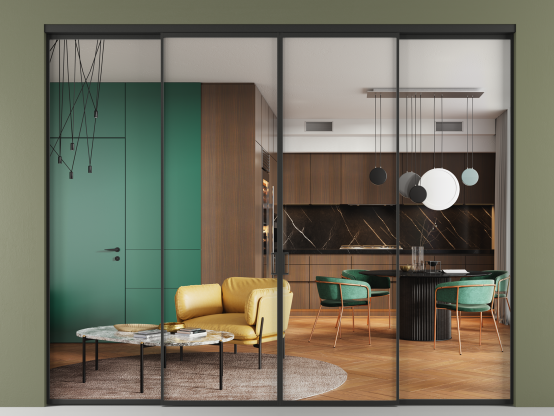 Алюминиевые перегородки Formato — это стильное и функциональное решение для современных интерьеров, предназначенное для разделения и зонирования пространства внутри одного помещения. Перегородки изготавливаются под индивидуальные размеры с шагом в 1 мм, что даёт возможность подобрать оптимальное соотношение размеров и количества створок, в том числе и для нестандартных проёмов.